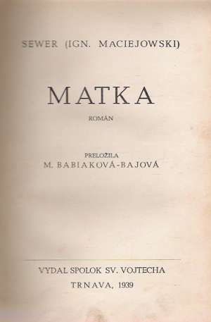 Nachádzate sa: Antikvariát - Starožitné knihy - Beletria - Maciejowski S. I.: MATKA